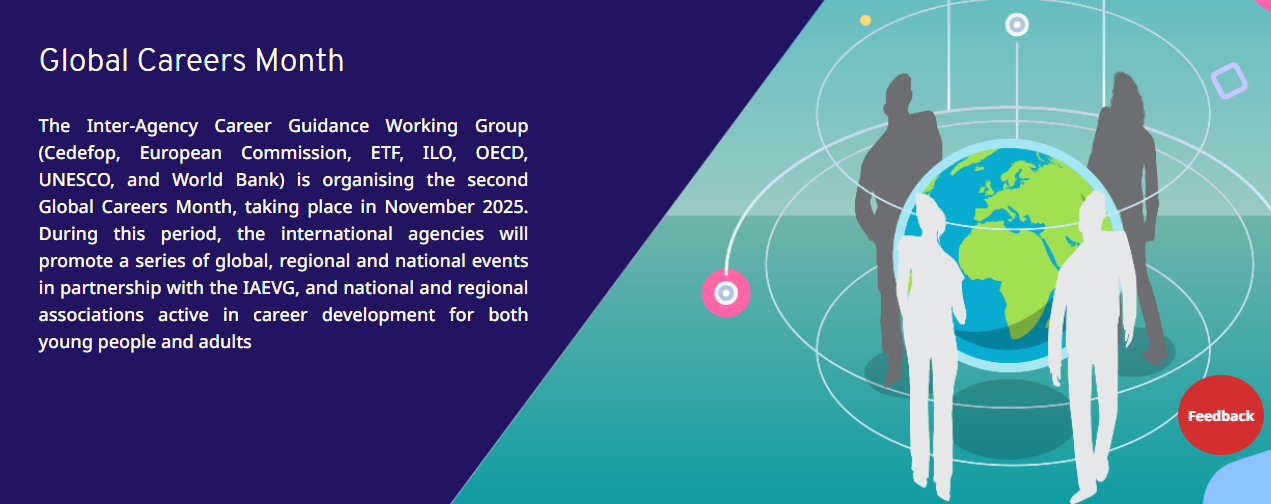 This webinar is also registered within the second Global Careers Month (November 2025), an initiative of the Inter-Agency Career Guidance Working Group (Cedefop, European Commission, ETF, ILO, OECD, UNESCO, and World Bank), organised in partnership with IAEVG and national and regional associations active in career development.